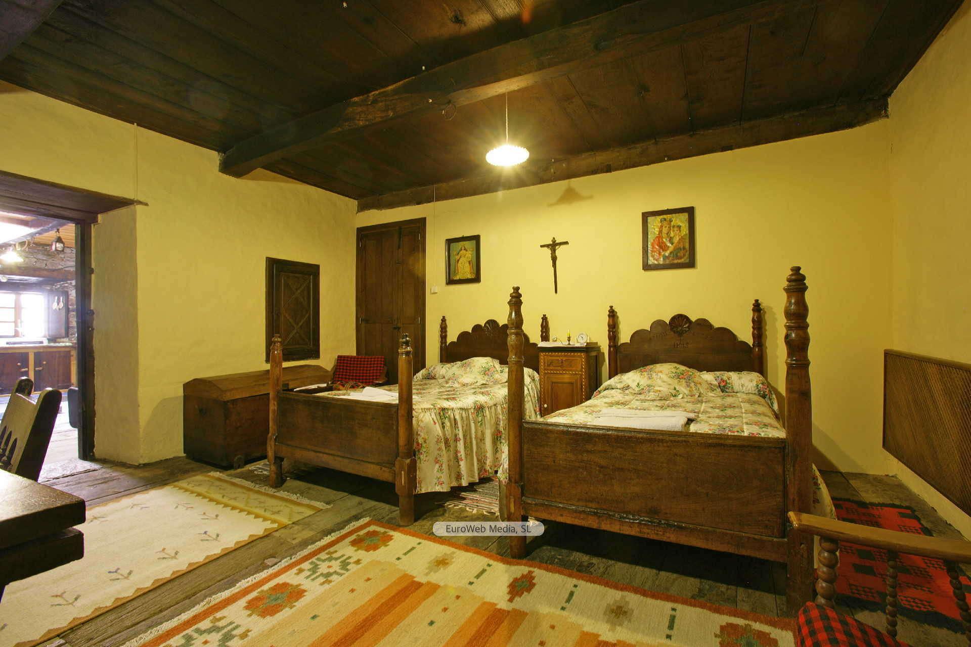 La casa dispone de una habitación doble muy amplia, con salida a la terraza y camas de 1,05 metros de ancha y de una habitación individual con cama de 1,05 metros de anchura de estilo rústico asturiano.